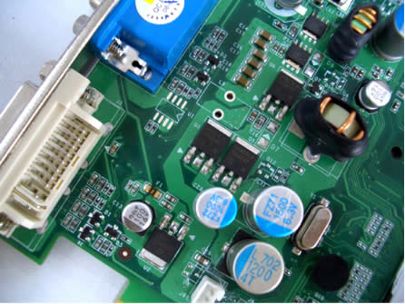一提起“降价促销”这几个字,不少人马上就会联想到“缩水”。不过,铭鑫7600GS-256D3在降低售价的同时,做工却依旧保持了原有的优秀水准。您可以看到,7600GS-256D3上用上了以往只在高档显卡上才出现的日系防暴固态电容,这种电容的性能远非同价位显卡广泛采用的电解电容可比。固态电容在价格上要比电解电容高三倍左右,但却能提供更好负载能力,并且让显卡远离“暴浆”的困扰。同时,在对画质产生明显影响的低通滤波电路方面,7600GS-256D3依旧下了大手笔,您可以看到显卡的显示器接口周围分布了很多滤波元件,而为显卡保驾护航的可恢复保险丝同样没被省略。