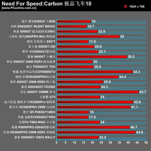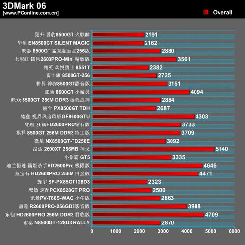 所有参测显卡的测试成绩:(所有数据均来自太平洋电脑网www.pconline.com.cn)