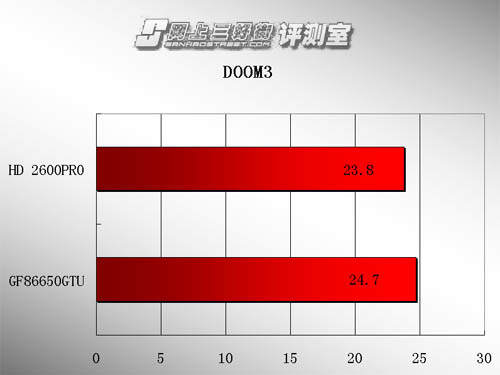 再来看看最新的游戏测试:我们知道,越新的游戏,贴图越复杂,需要的计算量也越大,因此具有足够多的运算资源是十分必要的,相对于120流处理器、24统一渲染单元的2600PRO,具有16流处理器的8500GT的确讨不到什么便宜,即使有着色器的分频技术来加持流处理器的运算能力,要它在新游戏中取得优势也的确有些困难。