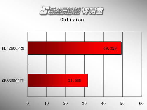 由于跑分与OpenGL游戏不是我们用电脑的全部,我们用电脑时更多的是运行DirectX游戏(无论是DirectX 9还是DirectX 10),因此我们也使用了大量的篇幅来描述显卡在D3D游戏中的性能表现。从测试成绩上可以看到,由于铭鑫世界风狂暴版显卡仅具备16个流处理器,虽然核心工作频率相当高,但是性能仍弱于具有120流处理器的2600PRO,可见是核心运算能力不够导致的。