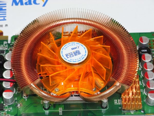 散热方面, 新铭鑫8800GTN-512D3超越版采用了比公版版更加出色的韩国原装ZERO Therm热管纯铜散热器,大型的热管搭配大量的纯铜散热鳍片环绕在风扇周围,使得散热效果十分出色,而且所有的显存上都已覆盖了散热片,通过散热风道兼顾显存散热,确保显卡长期稳定运行于一个较低的温度。