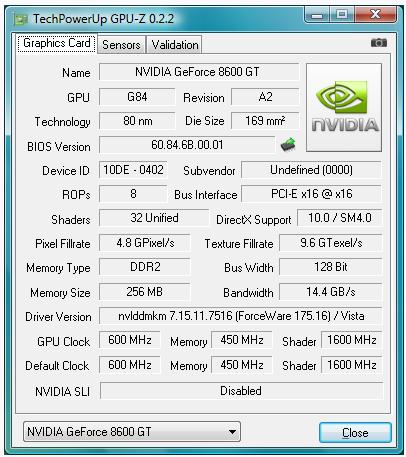 铭鑫8600GTU的GPU-Z截图,由上图我们可以看到有关铭鑫8600GTU的一些具体信息参数。