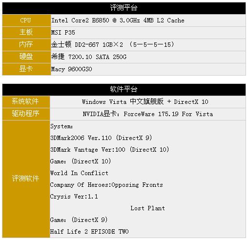 在测试平台上面,我们采用了目前的高端的双核平台Intel Core 2 E6850。在分辨率上我们选择了1440×900 0AA/AF,用于考察目前主流显卡在主流分辨率下的性能。在测试的画质上,我们选择了将画质调制最高(Crysis只是调到High级)。