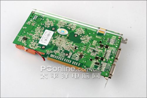 铭鑫 视界风 9800GTU-512D3中国玩家版背部造工很工整,元件焊接很整齐。