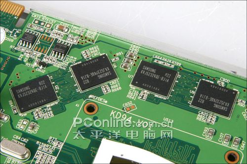 正面8颗DDR3 1.0ns显存颗粒组成512M/256bit规格