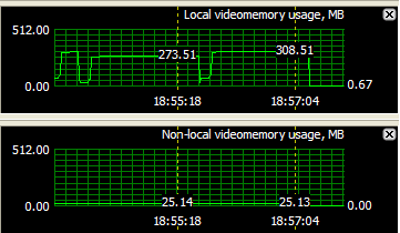 当显存不够用时,显卡就会通过PCI-Experss 16x总线向系统请求分配内存作为显存使用。然而,即便是最新的PCI-Express 16x 2.0最大也只能提供1GB/s的上下行宽带。与本地物理显存动辄几十GB/s的宽带相比,PCI-Express 16x总线的宽带实在是杯水车薪,对高性能GPU的影响也不言而喻。当显存不够用时,当GPU频繁向系统征用显存时,您就会感觉画面在不停地跳帧,游戏也变得非常卡……