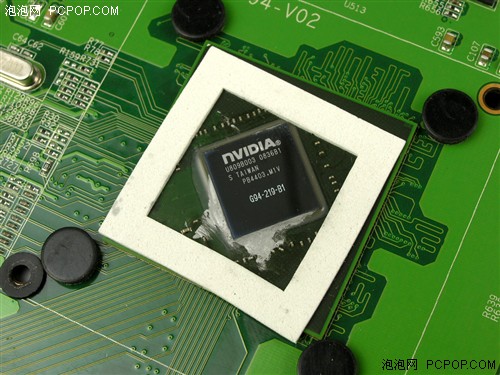 显卡核心的编号为G94-219,而9600GT的编号为G94-300,值得一提的是,9600GT采用的是65nm工艺,而这次铭鑫推出的缩水版9600GT都采用的是55nm工艺的产品,在工艺上更加先进,功耗、发热量都有很大的改善。