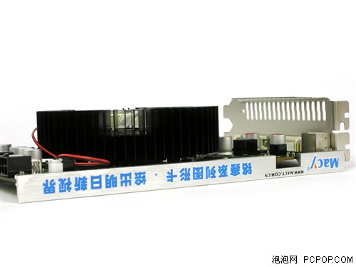 显卡供电模块采用的是当今比较常见的分体式供电设计,核心采用2相供电,而显存采用一相独立的供电模块。值得一提的是,铭鑫这款显卡的所有电容都采用的是来自日本富士通的固态电容,可以有效保证显卡的稳定性。