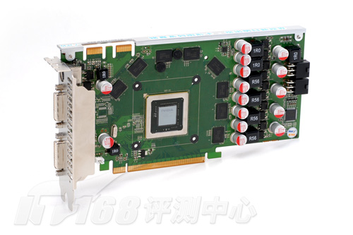 虽然板卡的版型采用了非公版设计,但显存还是依然采用公版的海力士0.8ns显存。采用了公版规格的海力士显存,一方面无需为显卡写入其他显存的信息,从而缩短研发时间;另一方面,0.8ns的GDDR3显存对于GeForce 9800GTX+这类高端卡而言已经足够,显存再高对于提升性能也是有限的。