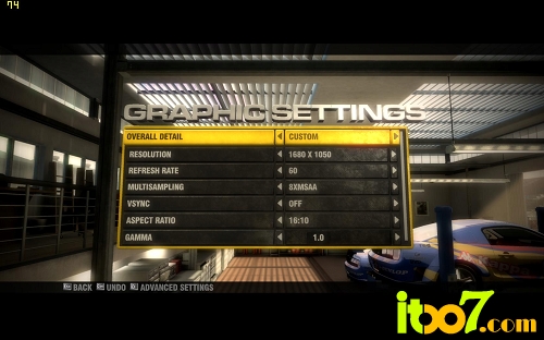 《超级房车赛:起点》游戏设置较为简单,笔者先将游戏画质调整到了“ULTRA”最高级别。