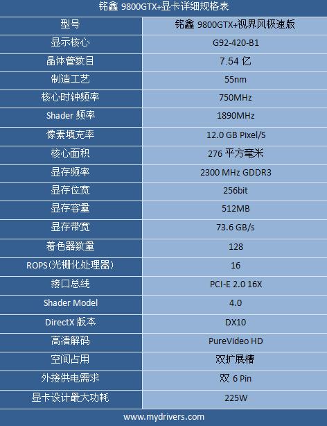 铭鑫9800GTX+显卡详细规格表