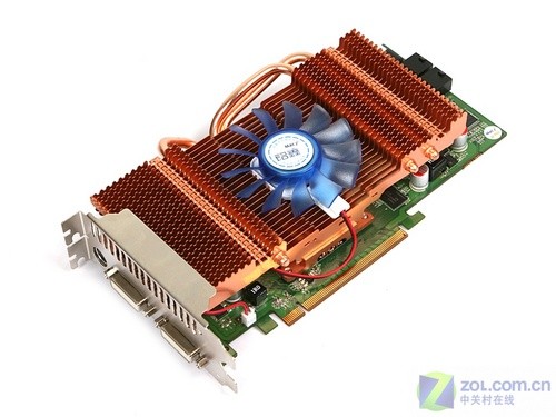 显卡视频输出接口方面,铭鑫9800GTX+极速版采用双DVI+S-Video的设计,再搭配DVI to D-Sub转接头,可以满足就绝大部分用户日常所需。同时显卡采纳双档板辅助散热设计,散热孔将把热空气排出机箱外。