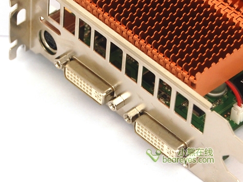 从显存背部看来,铭鑫视界风 9800GTX+ 512D3极速版做工非常整洁,彰显大厂本色,在接口方面,显卡采用了主流的双DVI+S-Video设计,满足日渐主流的大屏液晶输入接口需求,配合附件中赠送的DVI-to-D-Sub转接头,也可以使用只有VGA接口的液晶显示器。