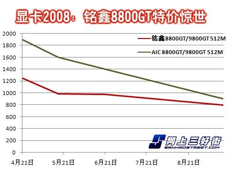 铭鑫在2008年5月份忽然将8800GT杀到了千元以下,这在当时是一个让人难以理解的价格。因为在HD4850没有上市之前,8800GT是一款在市场上处于无敌状态的产品,即使是HD3870 GDDR4超频到极限,也无法与8800GT对比。而HD3870X2虽可以以二敌一,但无论是性价比还是能耗比都不占优势。所以在这个时候,8800GT不是一个需要降价的产品。而铭鑫忽然将价格降到这样的水位,力度之大令人惊叹,可以说是当时最热门的产品。这次降价不但让更多的消费者听说了铭鑫这个品牌,而且也让NVIDIA和ATi等上游厂商正视了这个品牌。