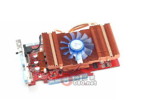 显卡采用双插槽设计,我们可以看到厂商设计了双DVI和视频输出接口,同时我们还可以看到视频接口的上方还有一个小开关,正是这个开关实现了超频功能。