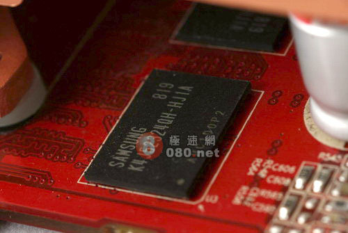 除了散热系统之外,显卡的供电设计以及显存选择也同样重要。全固态电容、全屏蔽电感等组成的3+2相工作电路保证了显卡的稳定,三星 1ns GDDR3显存也可以更好配合RV770核心发挥出更好的性能。