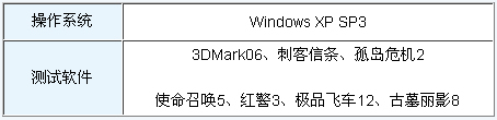 测试平台方面选择了酷睿2 E7300,为了防止CPU瓶颈的问题,本次测试中将CPU默电OC至3.2G主频。另外采用P45主板和DDR 800 2GB内存构成。测试内容包括3D合成测试软件3DMark 06,合成测试软件3DMark用总分衡量性能,3D游戏用平均fps来衡量性能,两者都是越高越好。