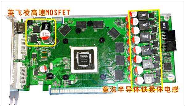 名厂用料:富士通全固态电容+意法半导体铁素体电感+英飞凌高速MOSFET。奢华用料,全明星阵容,打造显卡用料新典范。