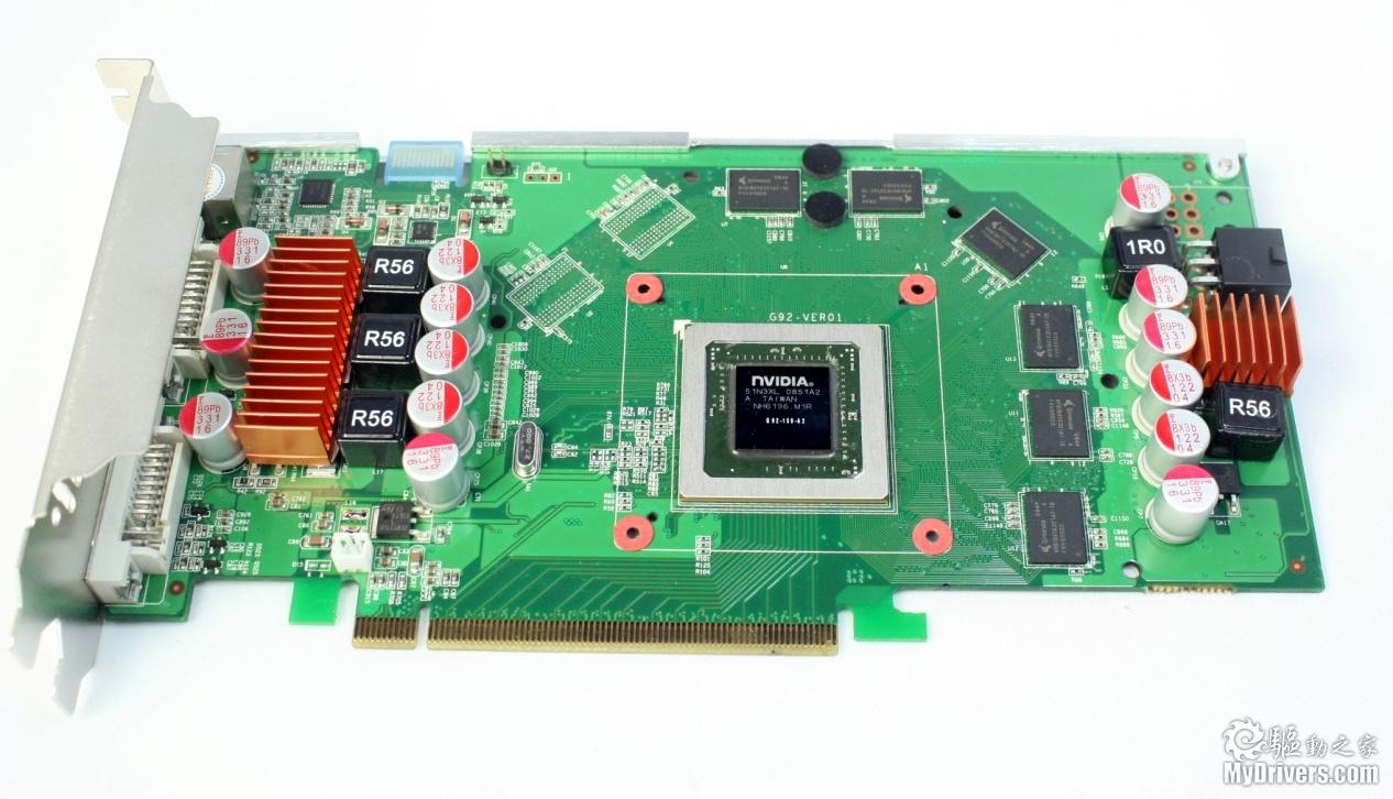 散热器都都拆下来了,下面肯定是要看到GPU了。G92-159-A2的GPU,经查询是65nm的制作工艺,核心频率以被厂家超到650,流处理器频率是1688MHz,显存频率为1800Mhz。而且,9600GTO使用了96个流处理器单元。