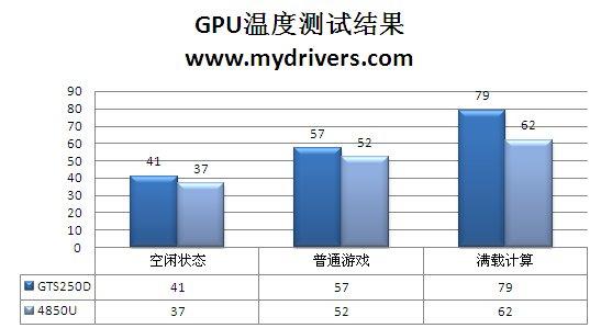 现在显卡的速度是越来越快,无疑其功耗也是越来越大了,为了让大家有更直观的认识。我们将分别测试GTS250D和4850在空闲状态、普通3D游戏、满载计算三个状态下的功耗以及温度,并做成曲线表格让供大家对比。为了更全面的涵盖、更真实的模拟大家平时的电脑使用状态,我们开启了空调,室温为26度。下面是对上述3种情况的说明: