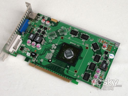 铭鑫“视界风”9600GTD 768MB D3双子同心版由于采用的绿色G94核心且无需外接电源供电,所以其热量并不高,无需采用高端显卡那种夸张的散热器设计。常规的铝制鳍片式散热器即可满足核心和PCB部分的散热要去,无需采用热管进行辅助散热。散热鳍片空隙均匀、线条明朗,而且鳍片较为密集,足以为不需额外供电的显卡提供非常不错的散热效果。