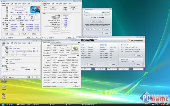 测试结果无任何异常,所的得分基本符合GTS250运行在这个频率设定下的程度。接下来我们将测试平台中的CPU和内存超频,再重复上述测试,观察得分变化。