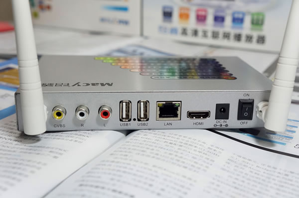 ·HDMI接口,usb 2.0接口,AV三合一,DC-5V电源,RJ45网络接口